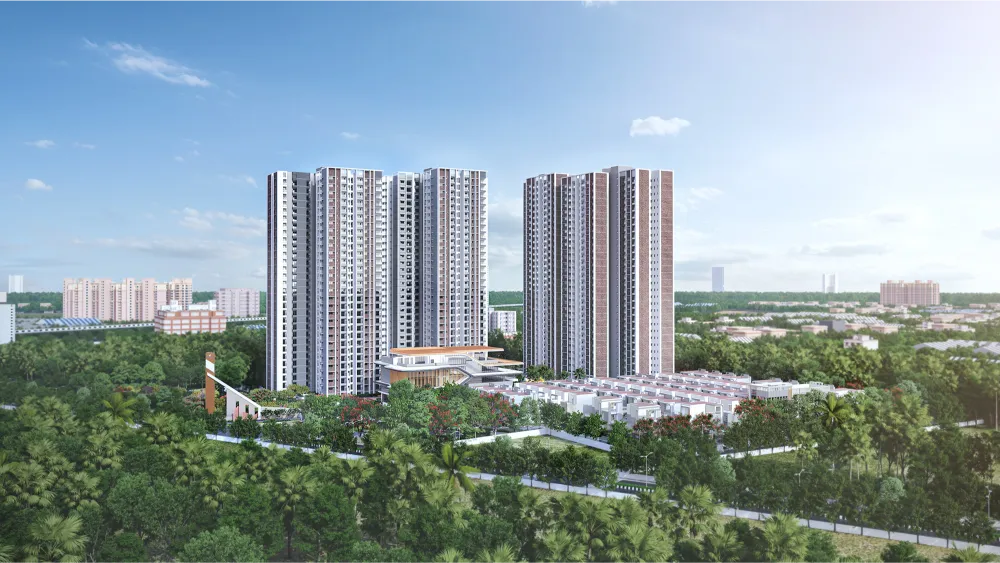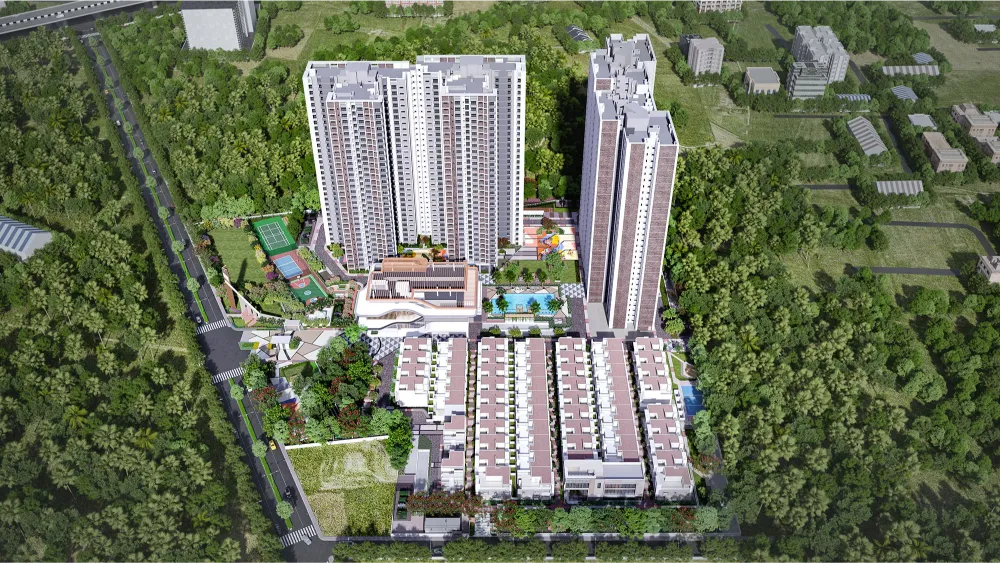 Sattva Songbird Apartments offer a contemporary way of living through mindfully planned homes, sprawling green zones, and a community that feels engaged and accessible. The 12-acre development includes 4 towers with Studio 1, 2, 2.5 and 3 BHK apartments and 4 BHK row villas, each shaped for comfort, light, and everyday ease. It brings together considered design and the long-standing reliability of Sattva.